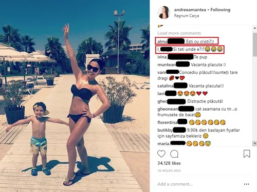 “Vacanță frumoasă, Andreea și David❤️?”,  “Un înger de copil!!!! Pup!!!! Vacanță, distracție maximă.!!!!!!”, “ Vacanță placută… o să-mi lipsească «WOWbiz», dar vă așteptam cu forțe proaspete ?????” sunt trei dintre comentariile lăsate de fanii prezentatoarei TV.