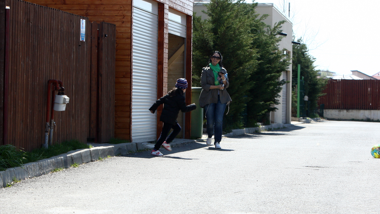 O zi obisnuita de primavara. Poate ca vantul sufla cam tare, dar asta nu a impiedicat-o pe Andreea Marin sa petreaca ceva timp pe strada, in fata casei, unde, minute bune, s-a ocupat exclusiv de fetita ei...