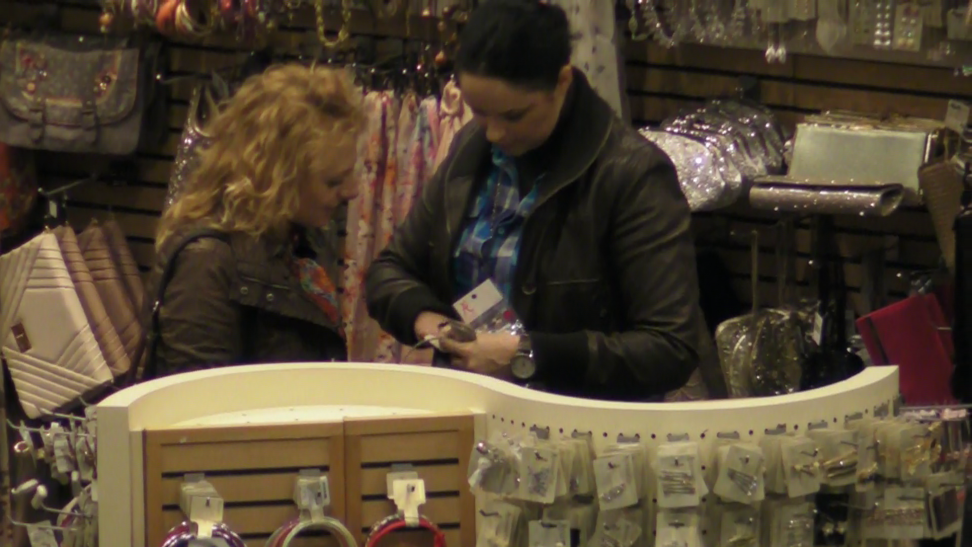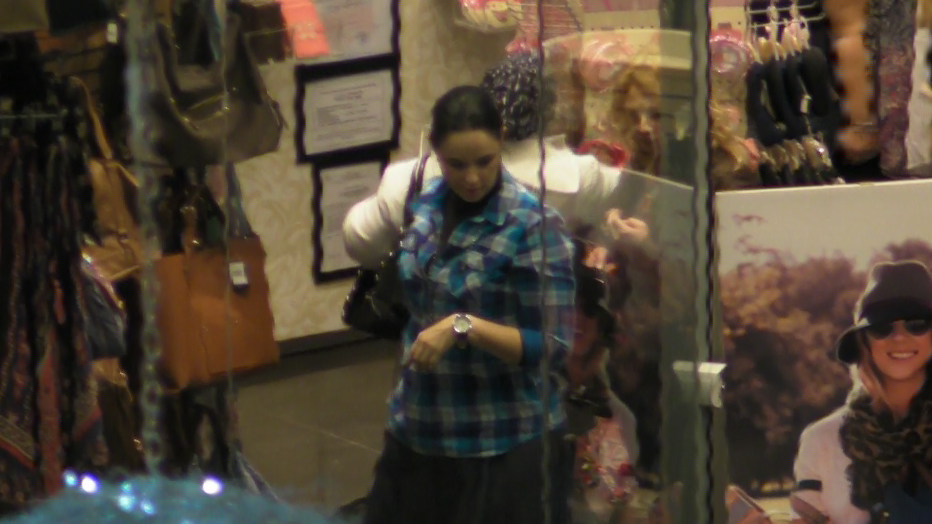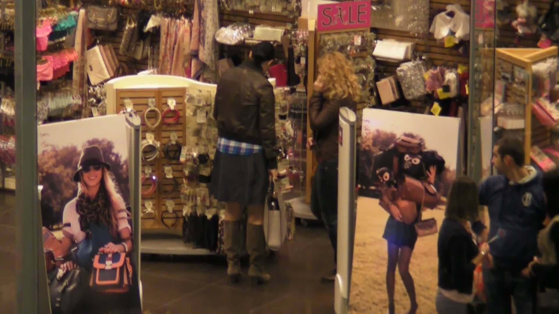 Insotita de o prietena, ea a petrecut minute bune printre gablonturi, esarfe, palarii si curele.