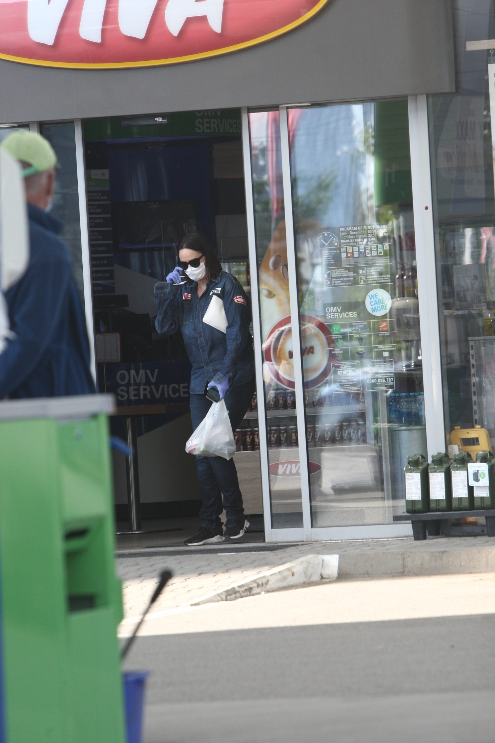 Într-o ținută lejeră și echipată corespunzător de pandemie, cu mănuși și mască de protecție, ”Zâna Surprizelor” a descins în stația de alimentare, acolo unde presupunem, după mărimea sacoșei, că a avut ce alege din rafturile cu produse.