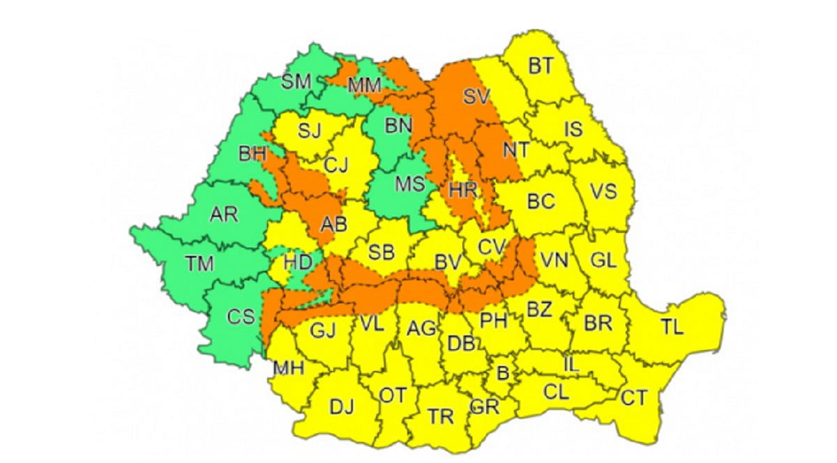 ANM a emis o nouă atenționare prin care anunță cod galben și cod portocaliu pentru mai multe județe din România. Fenomenele vizate sunt intensificări ale viscolului și vânt puternic.