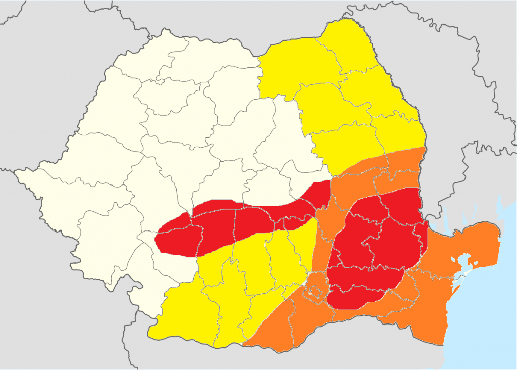 COD PORTOCALIU – vânt cu intensificări susținute, precipitații abundente, ninsori și viscol – în intervalul 05.02.2020 și dimineața zilei de 06.02.2020. În aceste zone, vântul va sufla cu putere, rafelele urmând a avea viteze cuprinse între 85 -105 km/h. În sudul Moldovei, Baragan și Dobrogea vor fi și precipitații mixte care vor favoriza producerea poleiului, însă – începând cu orele serii – vor fi înregistrate exclusiv ninsori și va fi viscol. Zăpada va fi puternic viscolită și troienită pe alocuri. În sudul județelor limitrofe Luncii Dunării stratul de zăpada va fi însemnat și se vor forma troiene.