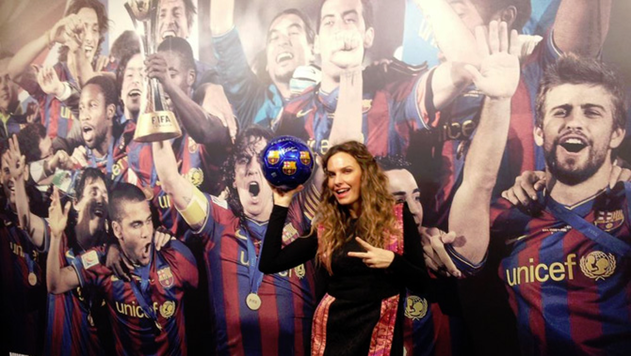 Artista nu a ratat ocazia de a merge pe stadionul echipei FC Barcelona, celebrul Camp Nou. Anna a stat la doar cativa centimetri de superjucatorii formatiei catalane, Carles Puyol, Dani Alves, Lionel Messi sau chiar iubitul Shakirei, Gerard Pique.