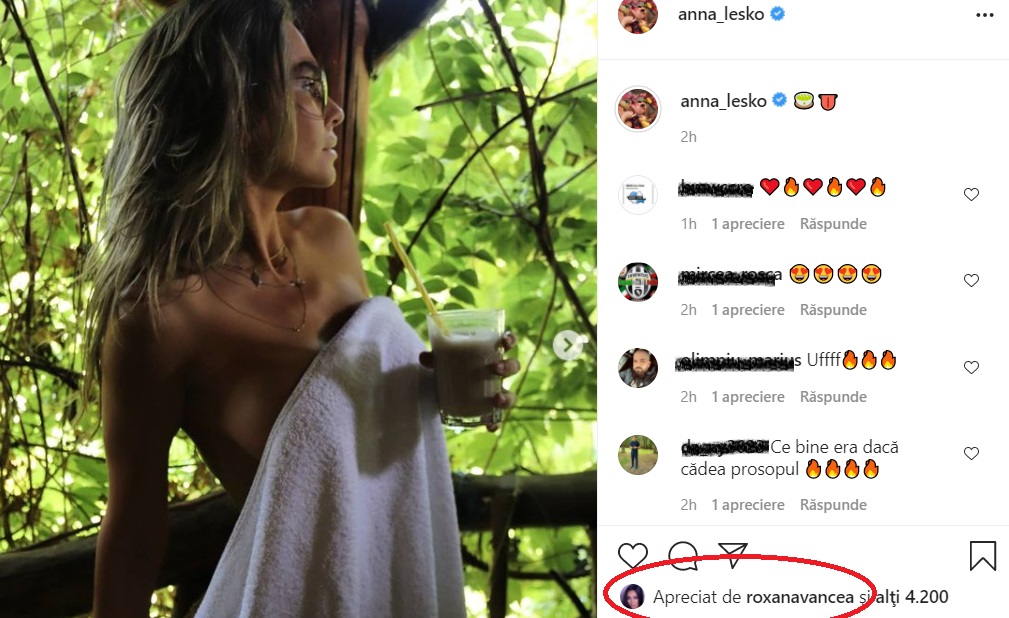 Anna Lesko a fost din nou protagonista unei ședințe foto, care i-a lăsat mască pe fani. Și nu numai! Roxana Vancea s-a numărat printre vedetele care au reacționat la ipostaza în care s-a lăsat surprinsă artista.