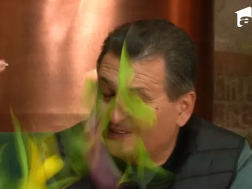 Enervată de jignirile mârlanului-șef al emisiunii, Daniela a luat niște flori dintr-o vază și i le-a aruncat lui Nea Marin în față – și asta s-a văzut pe sticlă. Vedetele care se mai aflau de față au fost surprinse de reacția Danielei, nu mai mult însă decât însuși Nea Marin.