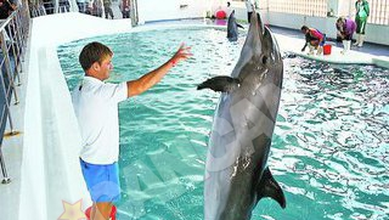Demonstratie. Delfinii au facut un mic show pentru musafira
