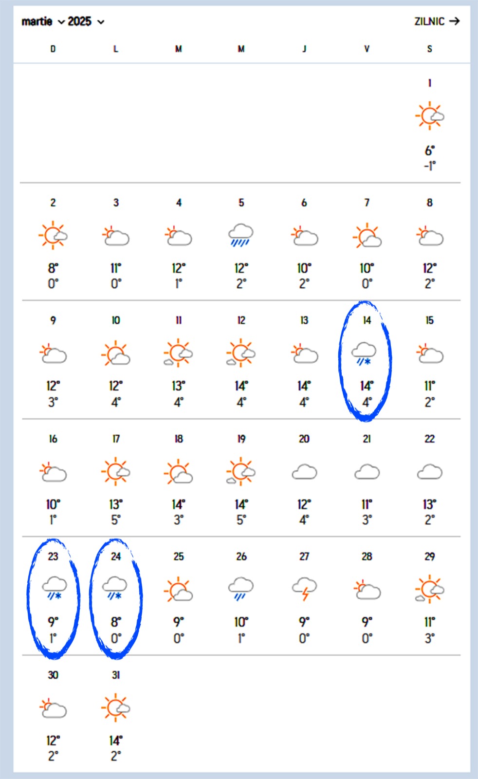Citește și: ORAȘELE DIN ROMÂNIA ÎN CARE NINGE ÎN MARTIE ȘI ÎN APRILIE, POTRIVIT METEOROLOGILOR ACCUWEATHER