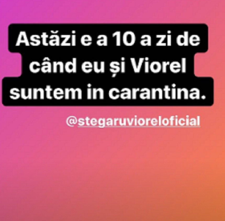 Vulpița de la Acces Direct le-a transmis fanilor un mesaj extrem de important, direct din carantină. Pe contul său de Instagram, Veronica Stegaru le-a mărturisit acestora că ea și Viorel se află în a 10-a zi de carantină, deci, practic, nu mai au prea mult de îndurat. „Astăzi este a 10-a zi de când eu și Viorel suntem în carantină” a scris Vulpița, pe rețeaua de socializare.