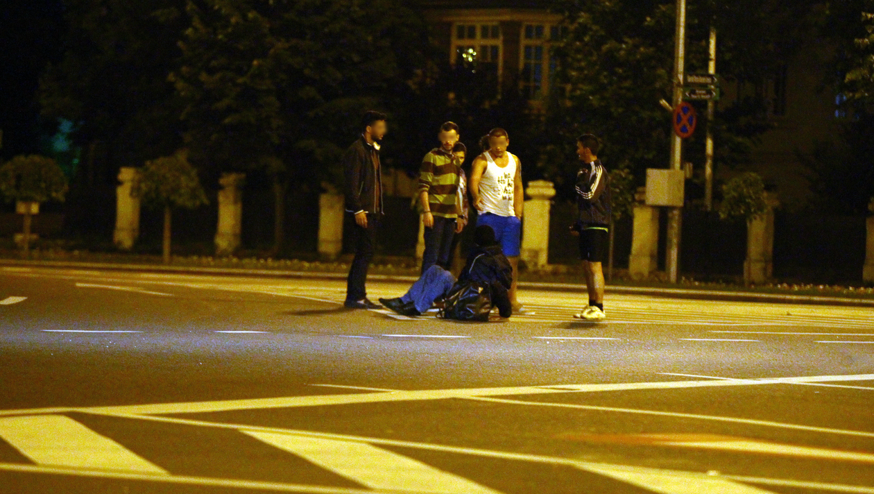 El s-a intins relaxat in mijlocul drumului pentru a putea admira in voie, de aproape, Arcul de Triumf! Punctul de belvedere pe care si l-a ales nu a fost insa deloc pe placul soferilor care treceau prin zona, care s-au vazut nevoiti faca manevre periculoase pentru a-l ocoli.