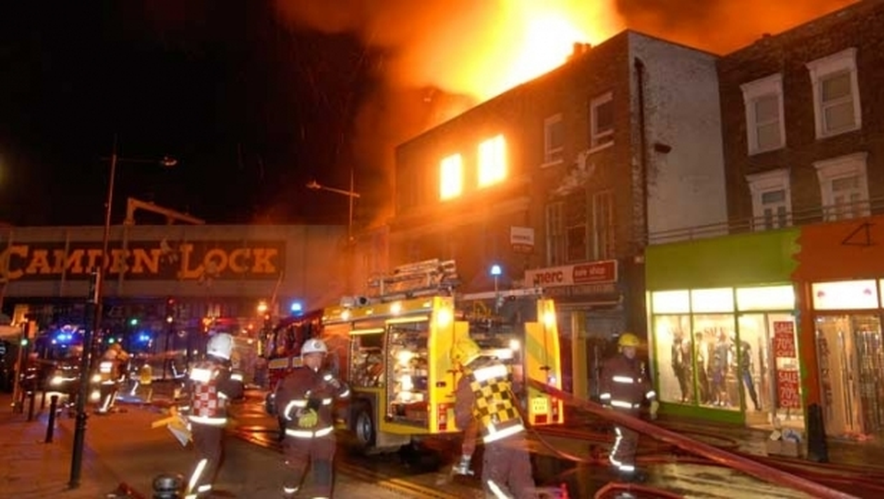 Un incendiu puternic a afectat Camden Market şi în februarie 2008.