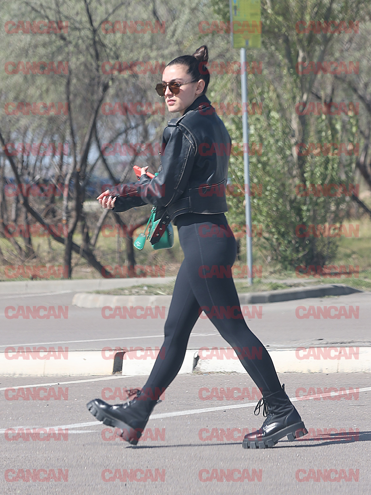 Într-o pereche de colanți de culoare închisă, extrem de mulați, care-i puneau în evidență formele cu care a fost înzestrată de la mama natură, Alexia Eram, după cum vă spuneam, a luat-o la pas, singură, prin parcarea cluburilor. Și ca să fie ținuta completă și potrivită pentru o ieșire la masă, fiica Andreei Esca și-a trântit pe ea o geacă oversize și a încălțat o pereche de bocanci. Totodată, din dorința de a pune o pată de culoare asupra outfit-ului format doar din piese vestimentare negre, iubita lui Mario Fresh a decis să-și accesorizeze ținuta cu o geantă verde. Și s-a potrivit la fix.