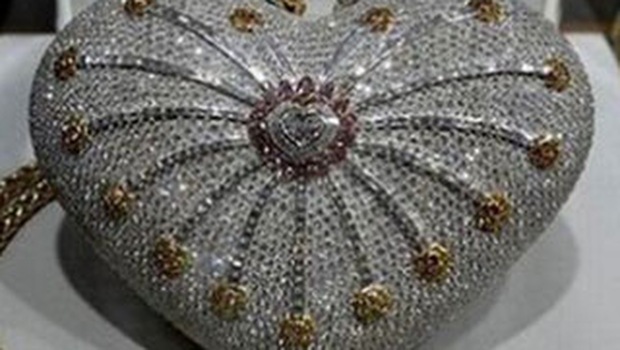 Un bijutier arab a batut orice record in domeniu dupa ce a realizat o poseta in forma de inima, realizata din aur alb si galben de 18 karate si incrustata cu peste 4.500 de diamante.