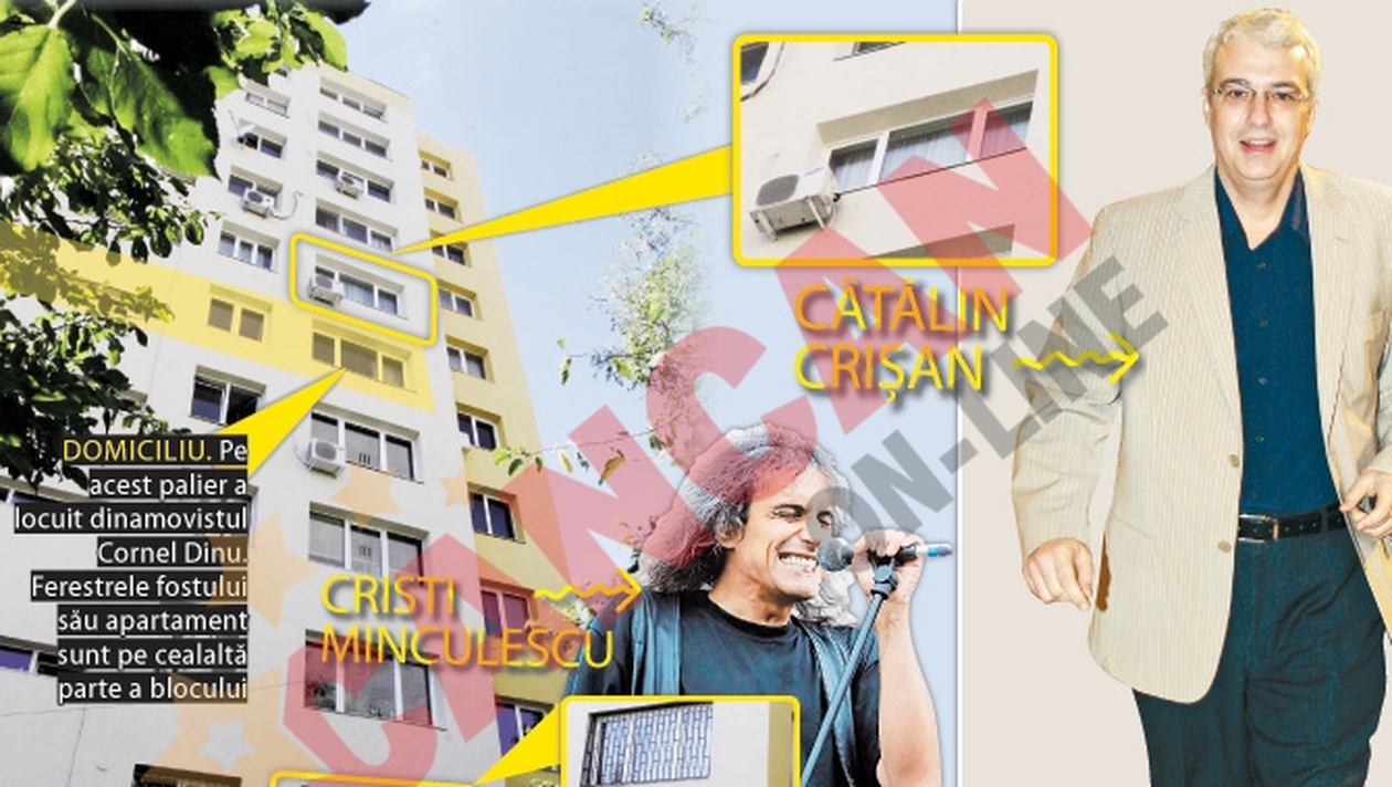 Canta rock la fereastra Cristi Minculescu s-a mutat de la Craiova in blocul 58 de pe soseaua Colentina, in 1974, cand avea 12 ani. „Cat a fost copil, nu am stiut prea multe despre el, era foarte cuminte. Imi amintesc doar ca ii placea foarte mult muzica. Adolescent fiind, deschidea fereastra, se aseza pe pervaz si canta rock la chitara. Atat de pasionat era, incat cativa ani mai tarziu a renuntat la Facultatea de Constructii in favoarea muzicii. Mama lui, de care era foarte apropiat, nu s-a suparat pentru asta, ci l-a incurajat sa isi faca o cariera in domeniu”, ne-a spus Florica Sima. Liftul era pictat in culorile lui Dinamo „Cainele” Cornel Dinu a stat pentru o perioada la etajul 5 al „blocului vedetelor”. Vecinii fostului fotbalist al formatiei din Stefan cel Mare isi aduc aminte ca fanii lui Dinamo l-au „rasplatit” pe Dinu pentru evolutiile spectaculoase din teren pictand liftul pe care il folosea acesta in alb-rosu, culorile clubului si scriindu-i numele pe usa. „Altceva nu mai stiu despre el. Era extrem de discret, nu socializa cu vecinii. Isi vedea de fotbal”, ne-a mai povestit Florica Sima. Isi deranja vecinii cu pianul Si Catalin Crisan a locuit de mic in Colentina. Era crescut de o strabunica, in lipsa parintilor, care calatorea mult pentru ca lucrau la o agentie bancara din Moscova. „Era un copil destul de retras, nu iesea in fata blocului. Se facea insa auzit tot prin muzica. Vecinii de dedesubt mi se plangeau mereu ca nu se pot odihni din cauza repetitiilor lungi la pian ale lui Catalin. In rest, cat a locuit aici, nu a avut nimeni nimic sa-i reproseze”, a afirmat fosta vecina.