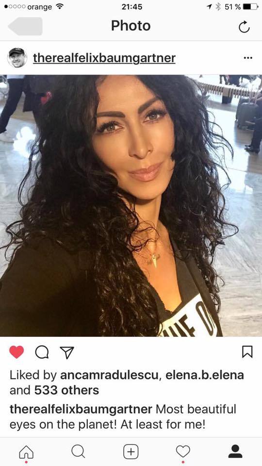 Mihaela Rădulescu şi Felix Baumgartner sunt îndrăgostiţi lulea unul de celălalt şi îşi fac declaraţii frecvent pe reţelele de socializare. Vedeta a fost impresionată de faptul că iubitul ei a postat o imagine cu ea şi a scris mesajul: ”Cei mai frumoşi ochi de pe planetă! Cel puţin pentru mine”.