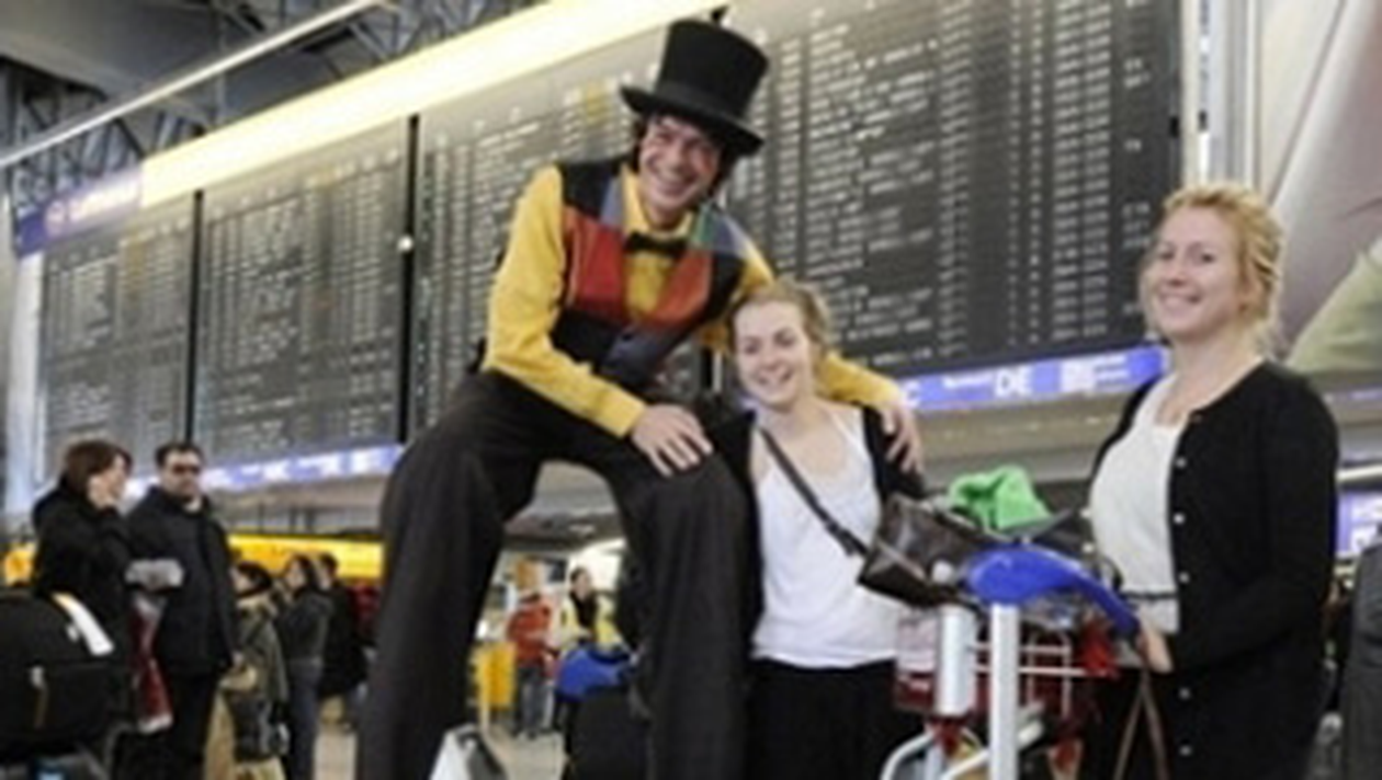 Pentru ca timpul sa treaca mai usor, oficialii aeroportului din Frankfurt, Germania, au angajat clovni.