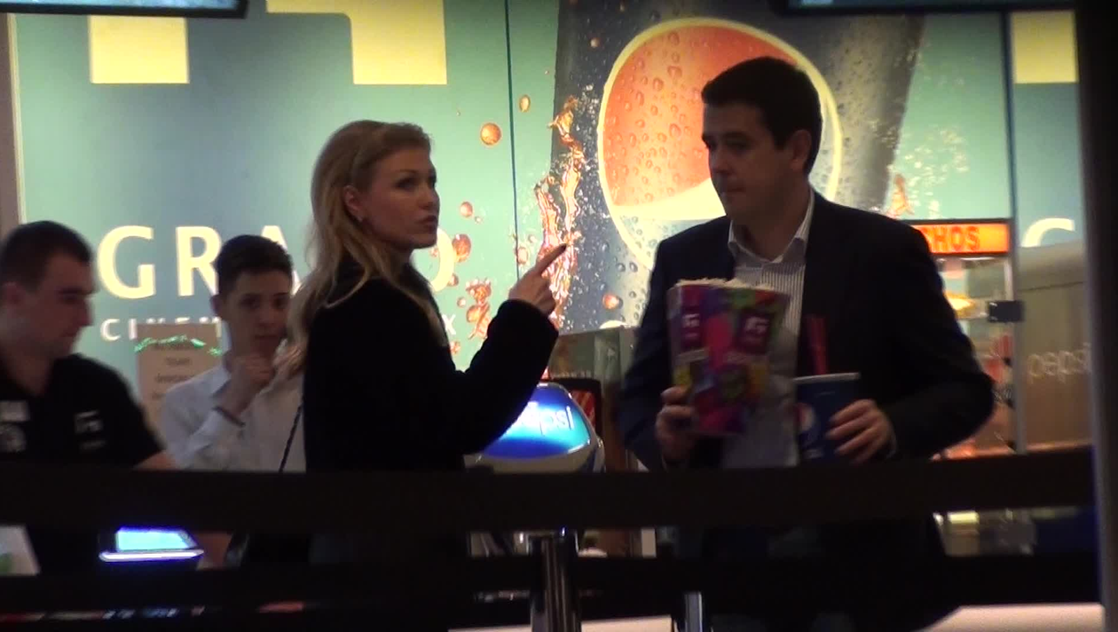 Intre timp, milionarul si-a cumparat o cutie mare de floricele si un suc acidulat si, dupa ce Cristina a luat biletele, au plecat linistiti catre sala.