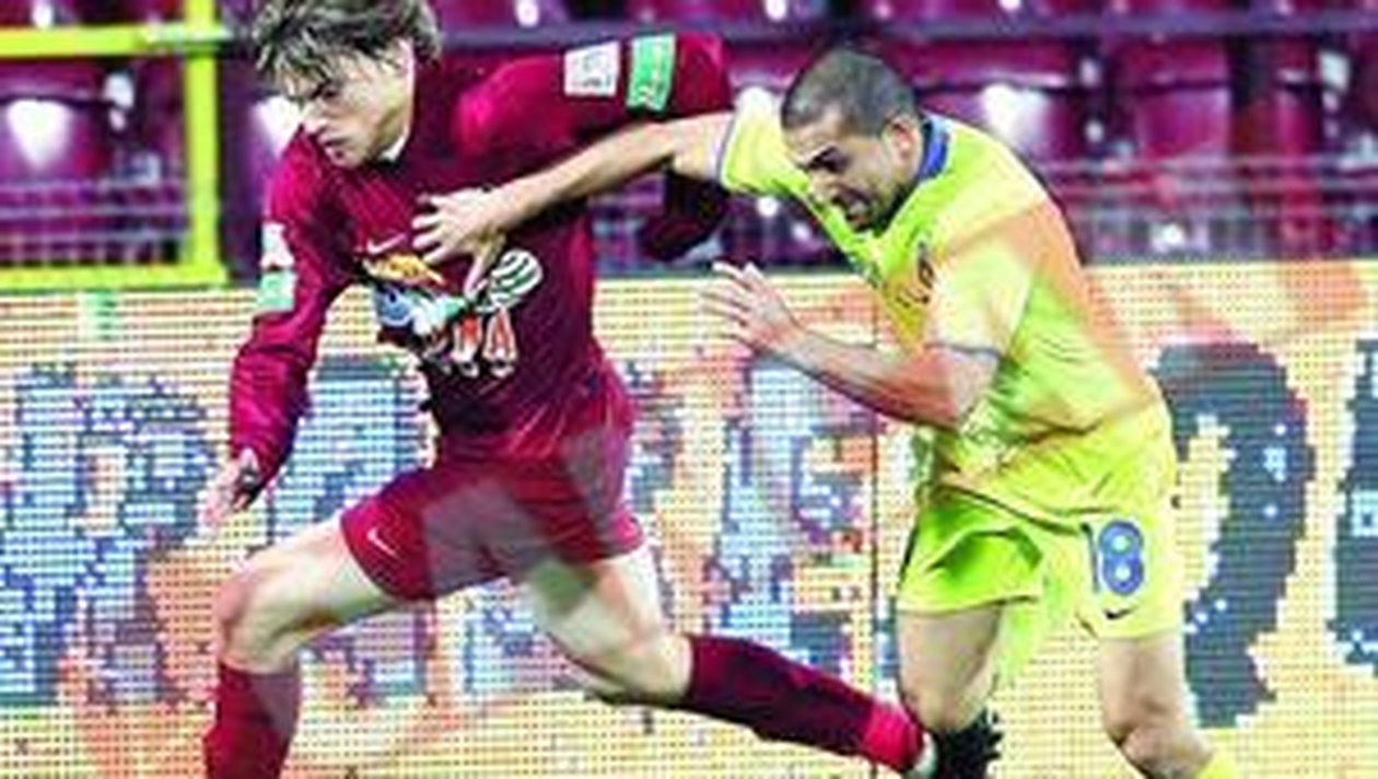 ESEC. Dubarbier (stanga) a inscris, iar Petre Marin a centrat pentru gol. Si totusi, au ratat prime uriase Economie. Finantatorii celor doua echipe, Arpad Paszkany si Gigi Becali, stiu unde sunt banii pe care jucatorii nu au reusit sa-i ia: la ei in valize Cristian Blanuta Cineva de langa mine soptea ca trupei lui Trombetta ii place sa joace atunci cand este condusa, amintind de meciul de la Roma. Dayro Moreno tocmai deschisese scorul in Gruia. Pe dracu ii place sa joace atunci! Care echipa este sedusa de un 0-1 chiar pe propriul teren? Iar dupa gol, tot stelistii au controlat jocul. Prea putin. Balanta s-a inclinat brusc. Semnalul l-a dat Muresan, trasor in bara. Culio a trimis la o palma peste bara, iar inevitabilul s-a produs in minutul 37, cand Dubarbier a finalizat cu un sut din marginea careului. De la cabine, CFR a iesit hotarata si a facut regula in teren. Trica a intrat in locul neinspiratului Didy la gazde, in timp ce Lacatus a scapat de mainile moarte Semedo si Toja, pe care i-a inlocuit cu Szekely si Tiago. Desi a stat o intreaga repriza in corzi, Steaua a reusit sa smulga punctul de la Cluj. O remiza in urma careia fotbalistii ambelor tabere au pierdut primele, 15.000 de euro, respectiv, 5.000, oferite doar la victorie.
