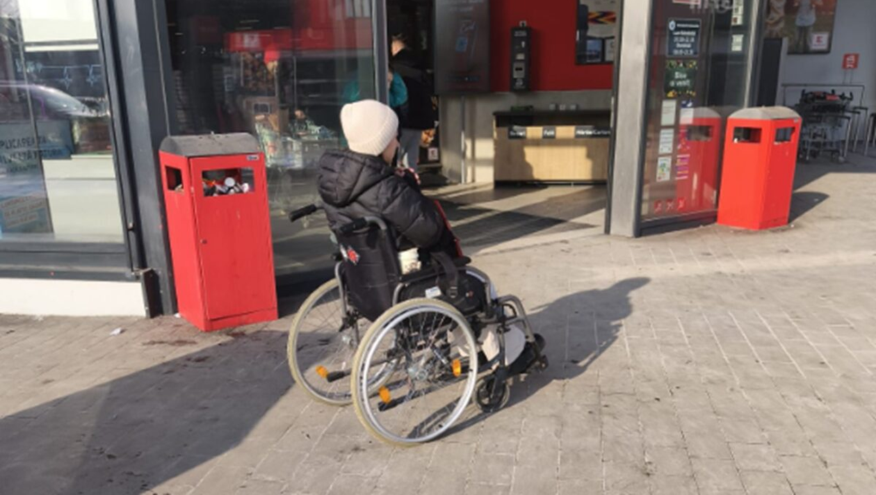 Potrivit cetățenilor, cerșetoarea are 25 de ani își desfășura activitatea în zona Lidl sau Kaufland din cartierul Tătărași, locații la care se prezenta săptămânal. Îmbrăcată sărăcăcios, într-un scaun cu rotile pentru persoane cu dizabilități, femeia reușea să strângă sume mari de bani din mila trecătorilor.