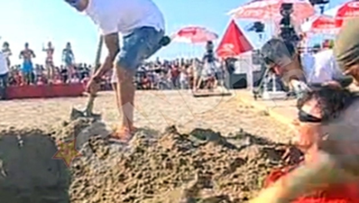 Razvan si Dani au propus o noua abordare de interpretare artistica, in emisiunea de azi-dimineata. Matinalii l-au ingropat in nisip pe Aurel Moldoveanu, chiar inainte de a-si incepe momentul.