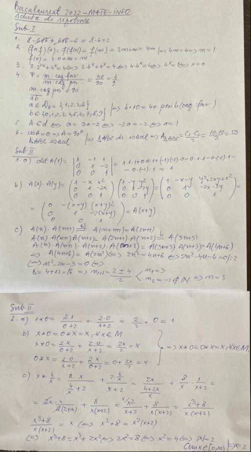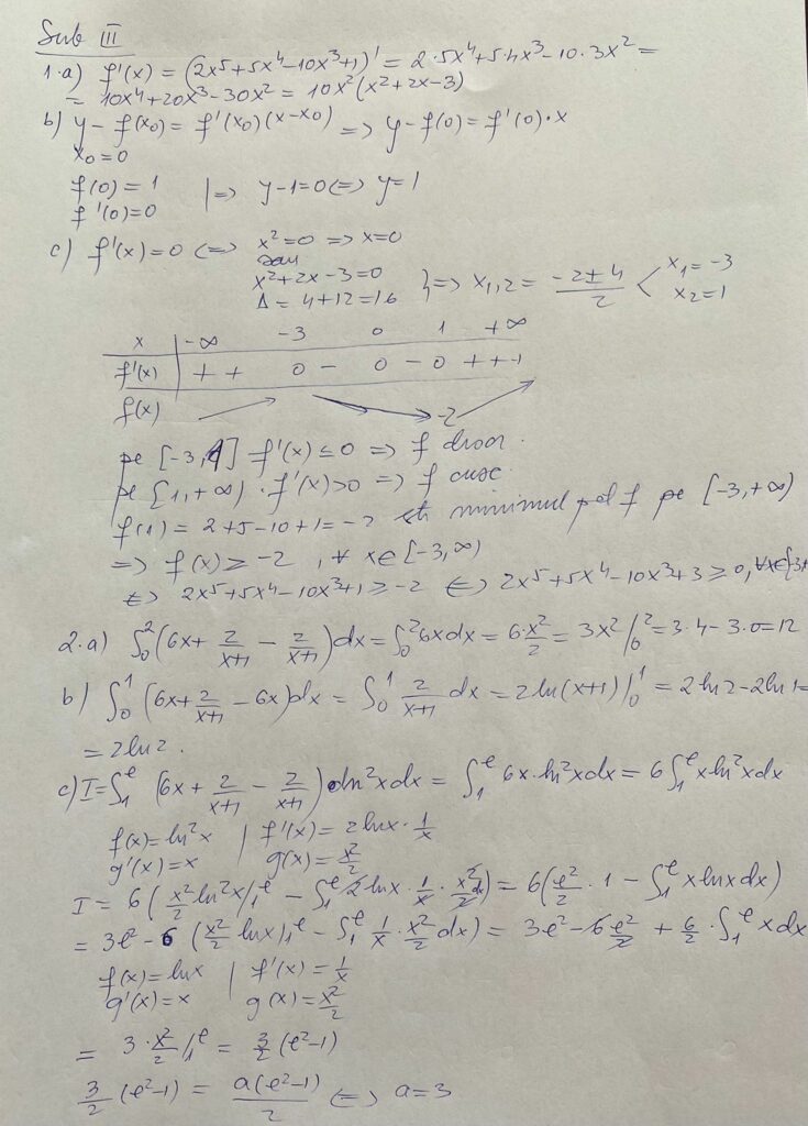Rezolvarea subiectelor de la proba de Matematică, profilul Mate-Info