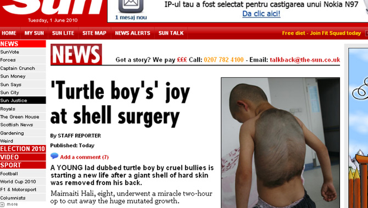 Lui Maimaiti Hali pielea de pe spate a inceput sa i se transforme intr-o adevarata carapace, fapt ce i-a transformat viata intr-un adevarat cosmar.