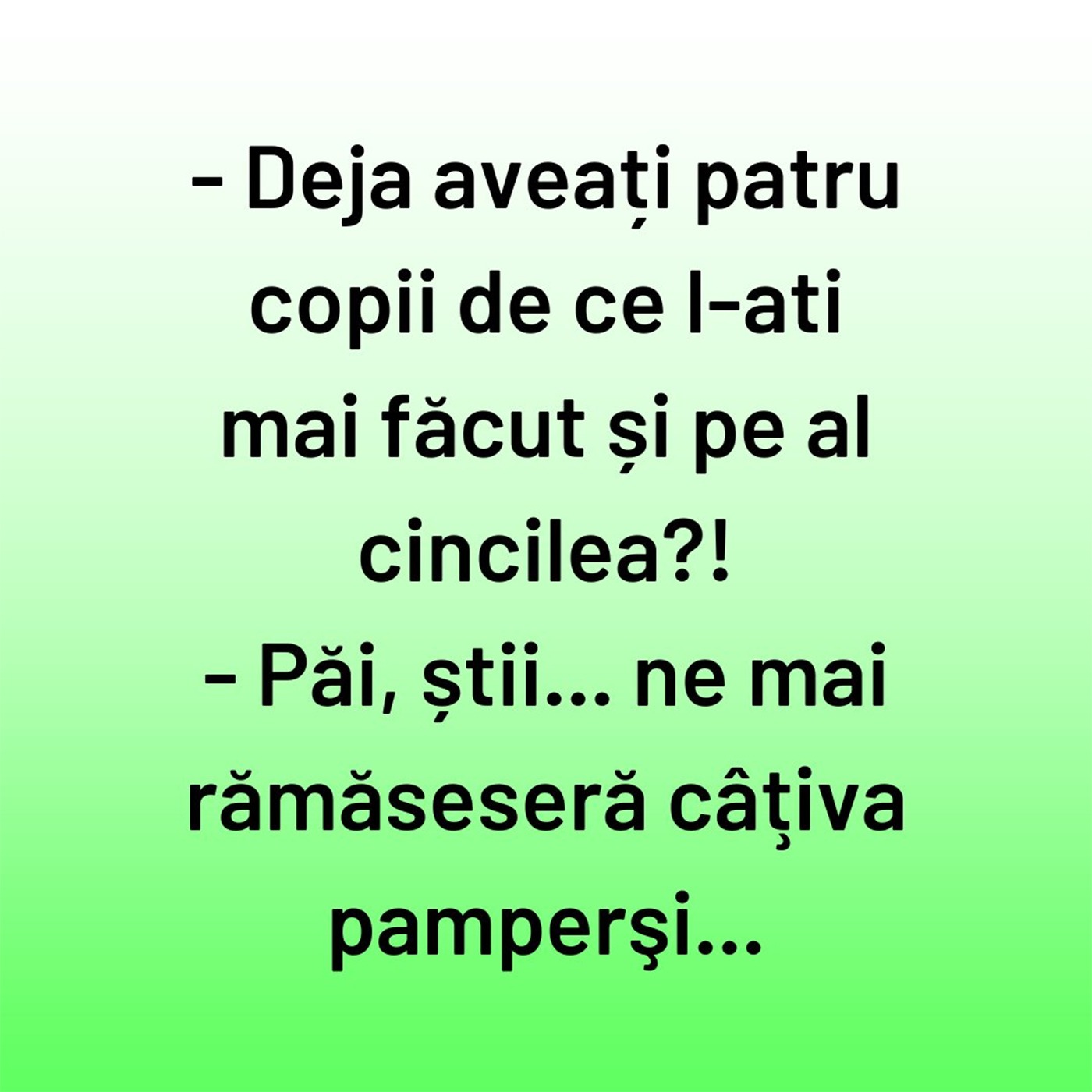 – Deja aveți patru copii de ce l-ați mai făcut și pe al cincilea?