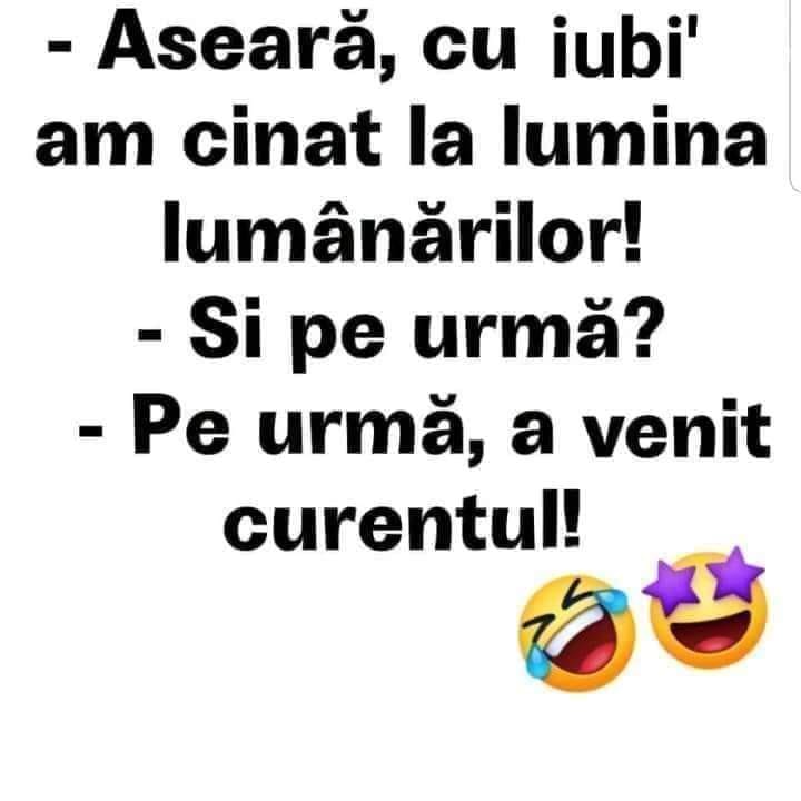– Aseară, cu iubi, am cinat la lumina lumânărilor!