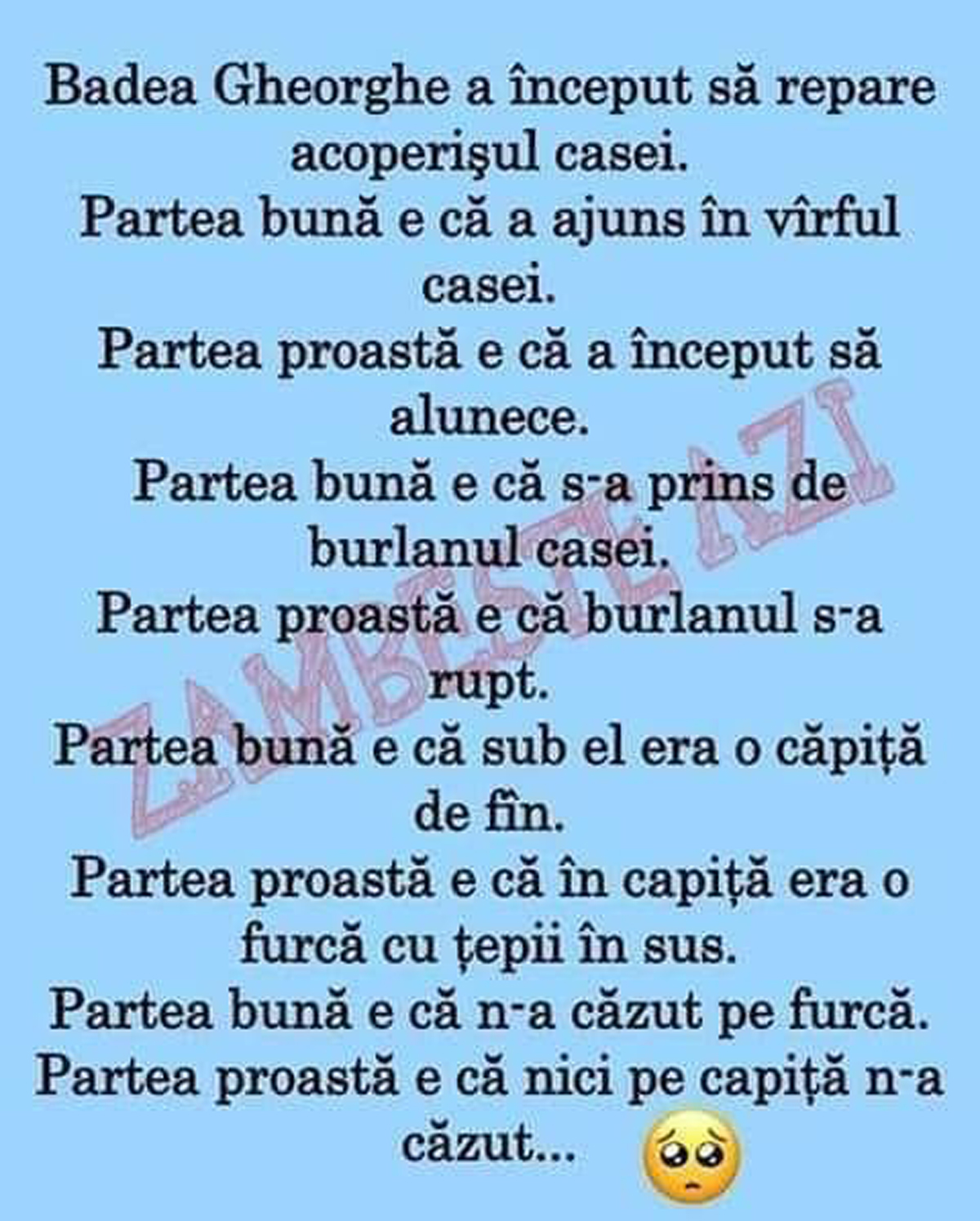 Partea bună e că n-a căzut pe furcă.