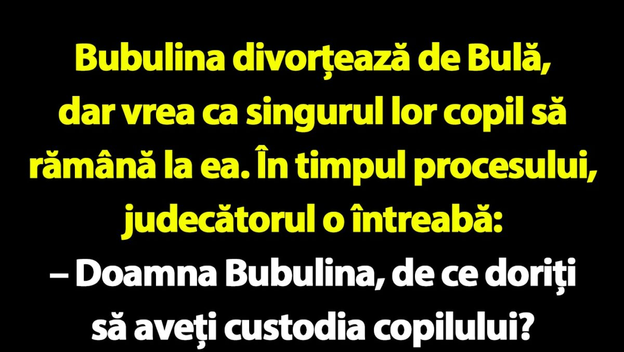 – Domnule Bulă, dar dumneavoastră de ce vreți custodia copilului?