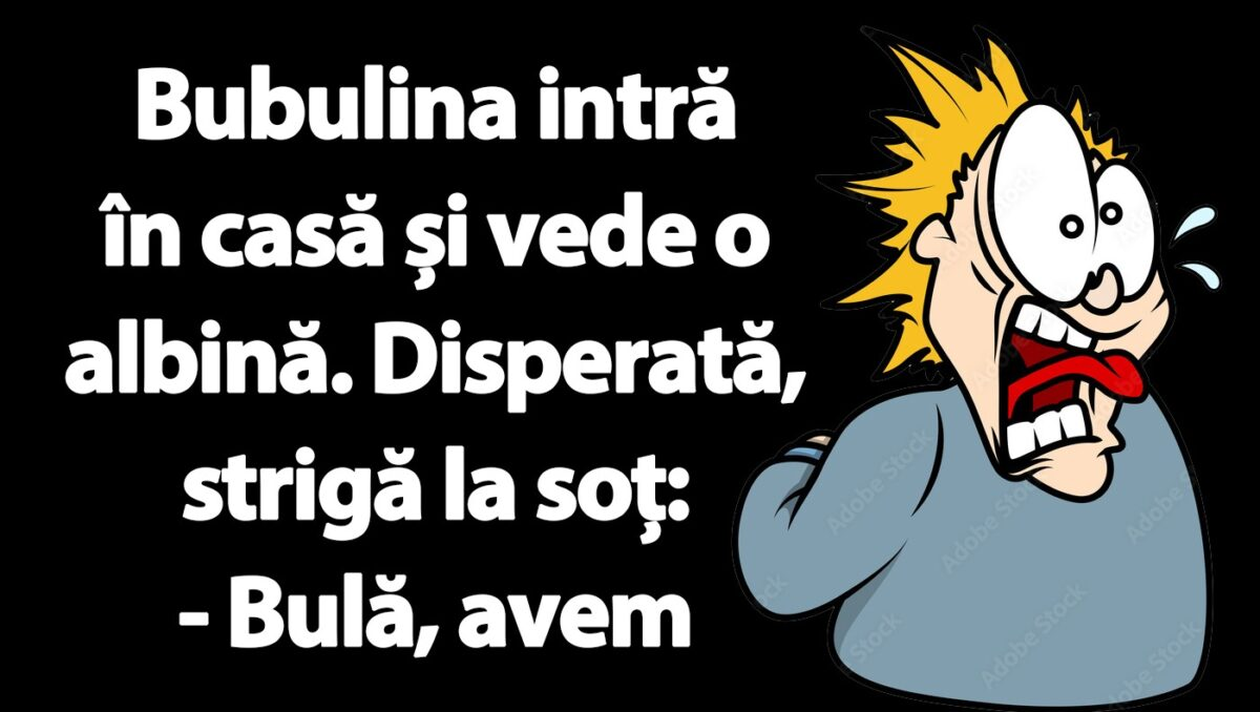 Bubulina intră în casă și vede o albină. Disperată, strigă la soț:
