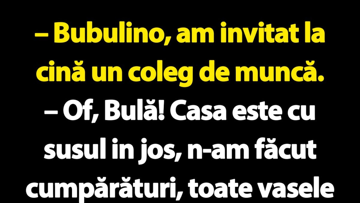 – Of, Bulă! Casa este cu susul in jos, n-am făcut cumpărături, toate vasele sunt murdare și n-am chef deloc să gătesc.