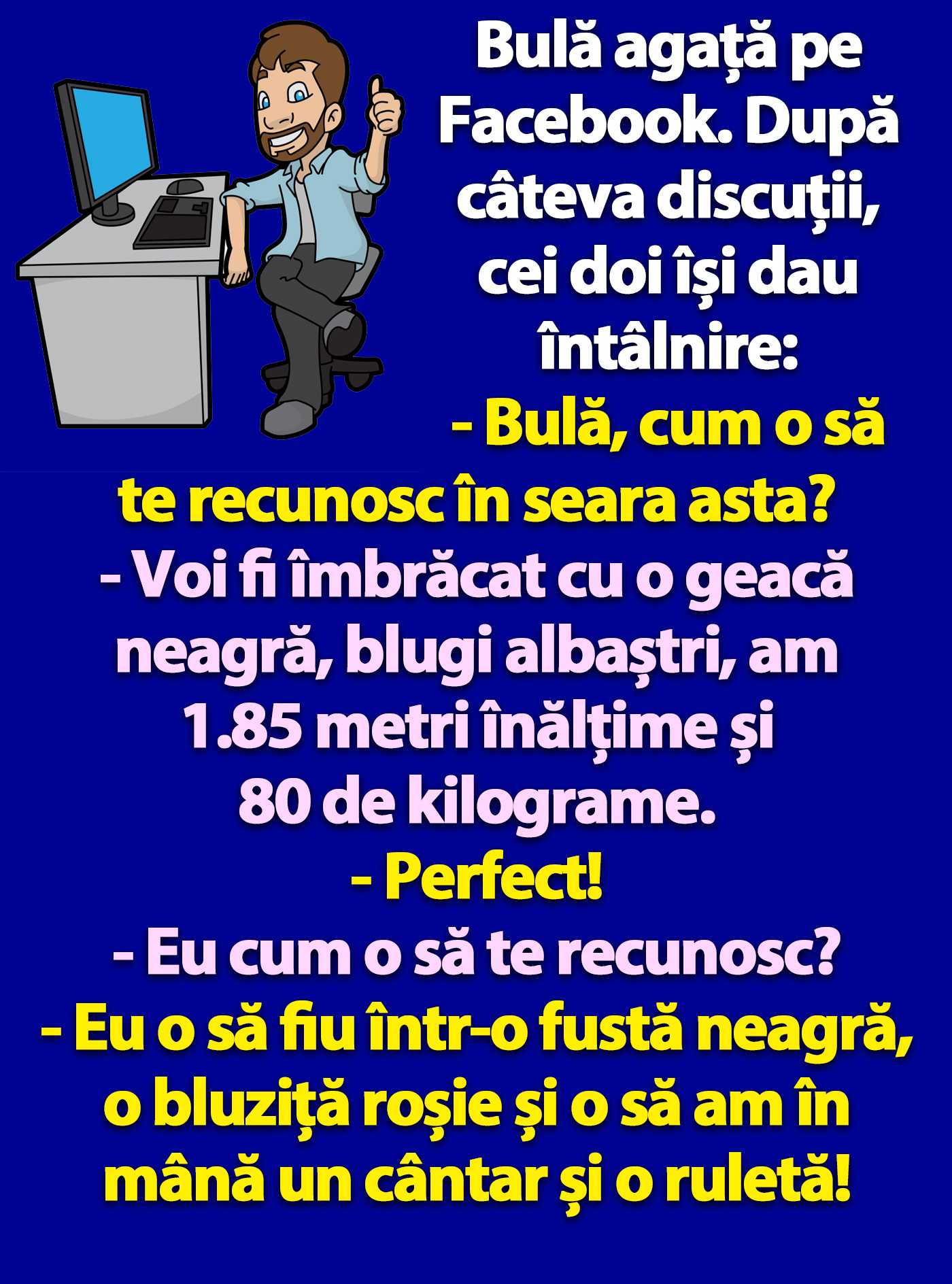 CANCAN.RO ți-a pregătit, ca de fiecare dată, un banc amuzant, pentru a începe ziua într-un mod cât mai pozitiv. Iată cum a decurs discuția dintre Bulă și femeia cu care și-a dat întâlnire.