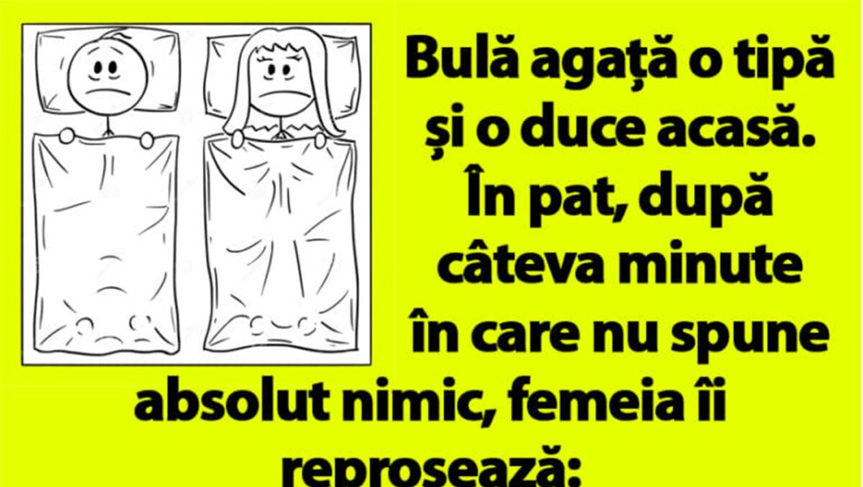 „Bulă agață o tipă și o duce acasă. În pat, după câteva minute în care nu spune absolut nimic, femeia îi reproșează: