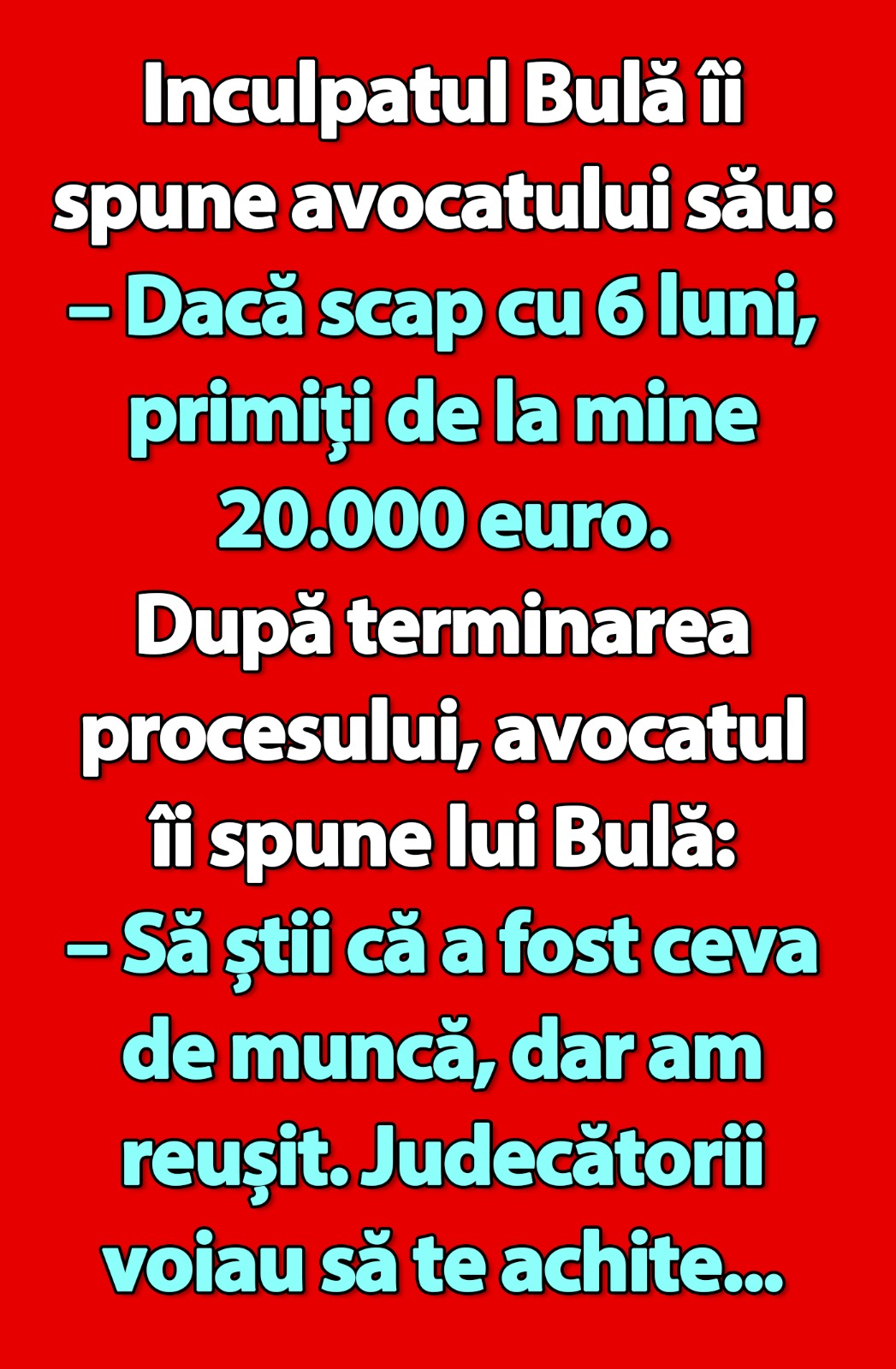 – Dacă scap cu 6 luni, primiți de la mine 20.000 euro.