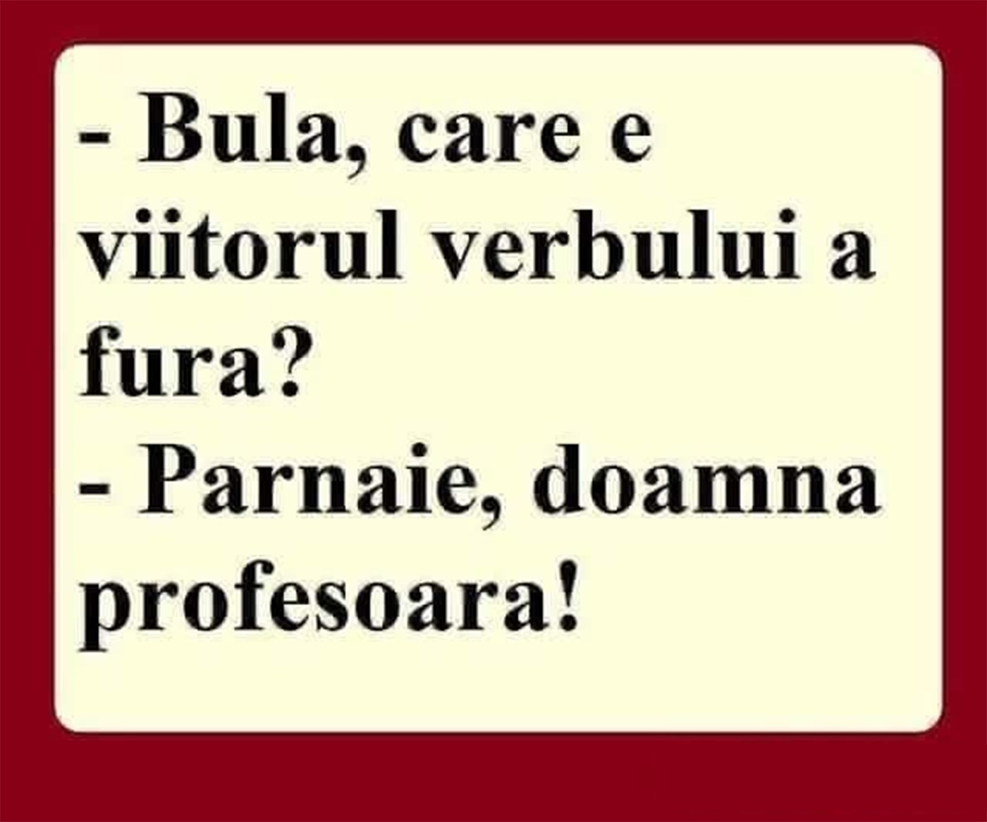 – Bulă, care e viitorul verbului a fura?