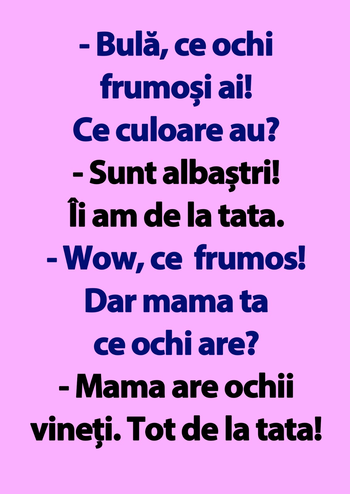 – Mama are ochii vineți. Tot de la tata!
