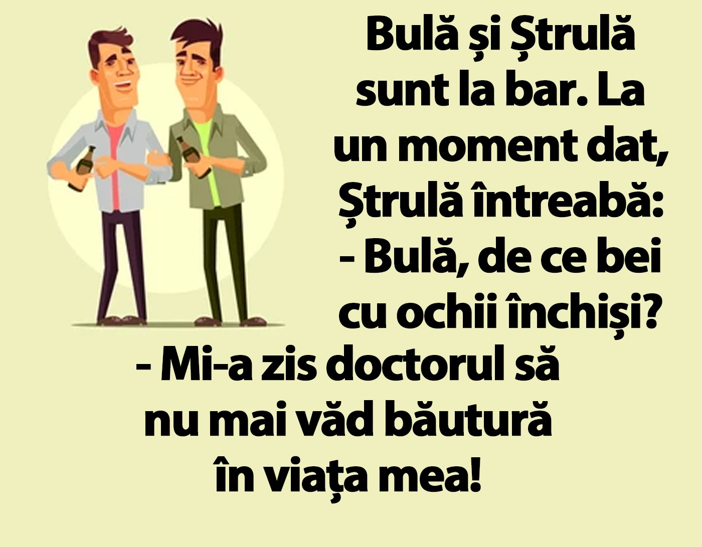 „Bulă și Ștrulă sunt la bar. La un moment dat, Ștrulă întreabă: