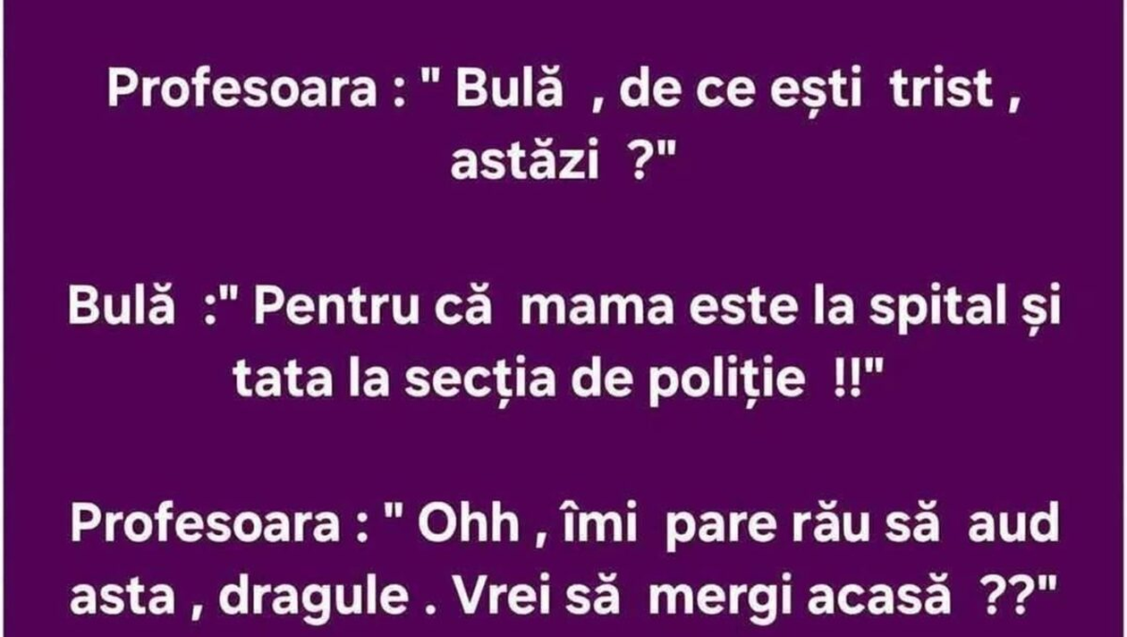Profesoara: ” Bulă, de ce ești trist, astăzi ?”