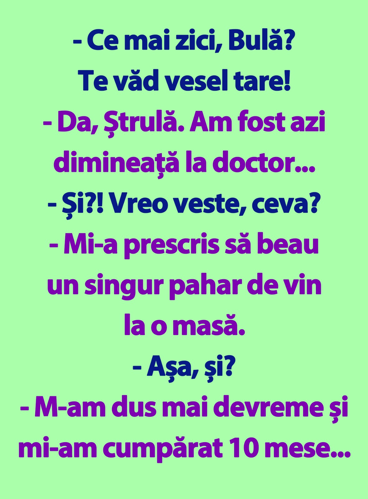– Da, Ștrulă. Am fost azi dimineață la doctor…
