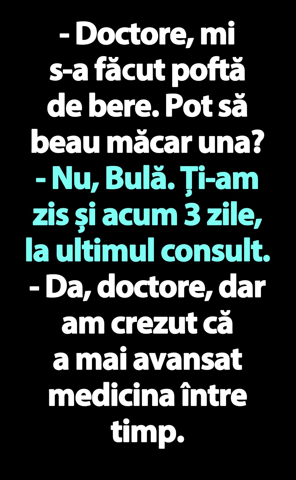 – Nu, Bulă. Ți-am zis și acum 3 zile, la ultimul consult.