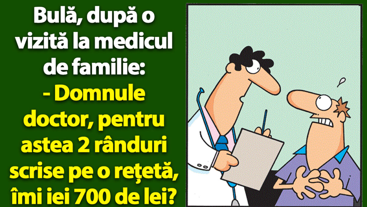 – Domnule doctor, pentru astea 2 rânduri scrise pe o rețetă, îmi iei 700 de lei?