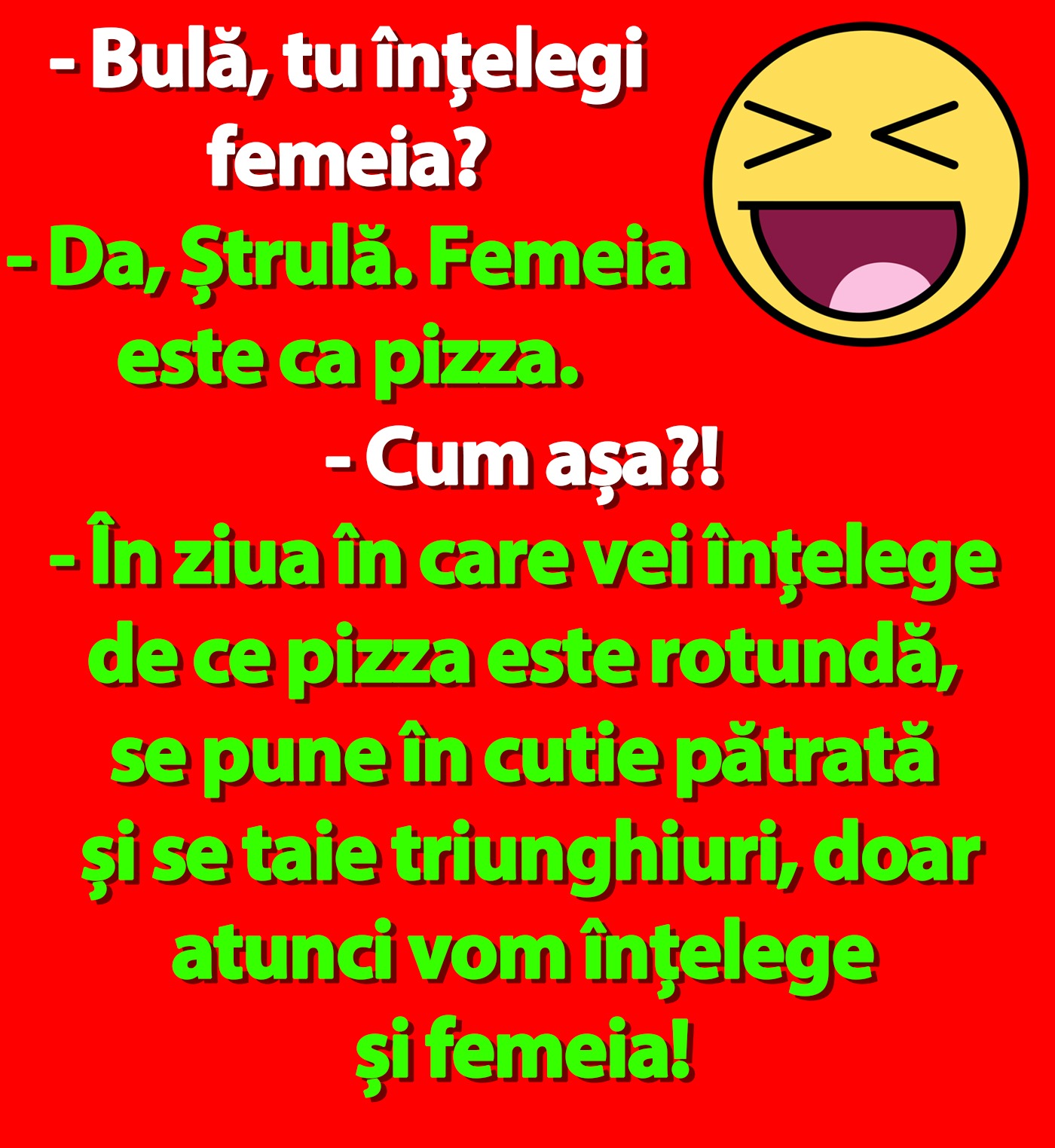 – Da, Ștrulă. Femeia este ca pizza.