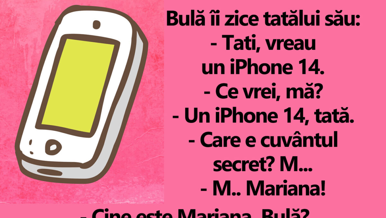Banc. Îți aducem zâmbetul pe buze, în această dimineață, cu un banc savuros! Bulă stă de vorbă cu tatăl lui și îi cere un telefon performant. Dialogul stârnește amuzament!