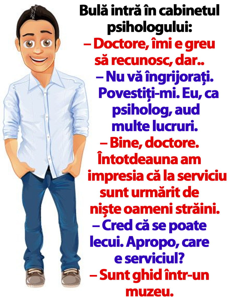 – Nu vă îngrijorați. Povestiți-mi. Eu, ca psiholog, aud multe lucruri.