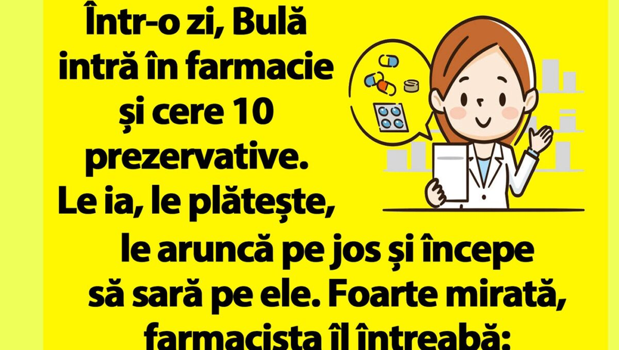 „Într-o zi, Bulă intră în farmacie și cere 10 prezervative. Le ia, le plătește, le aruncă pe jos și începe să sară pe ele. Foarte mirată, farmacista îl întreabă: