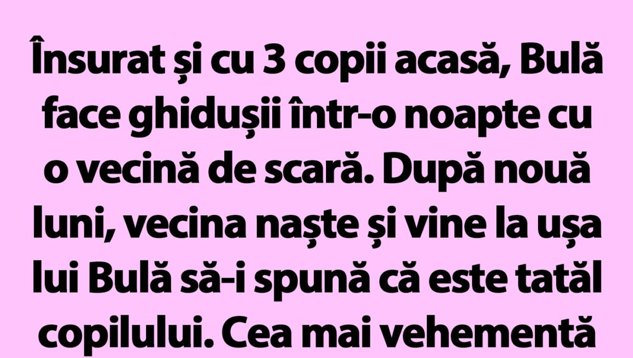Citește și: BANCUL DE LUNI | ”DE CE AI OCHIUL VÂNĂT, COSTELE?”