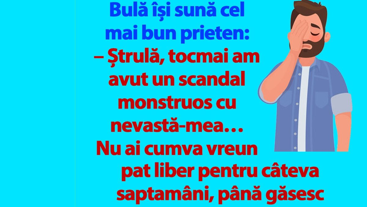 – Ștrulă, tocmai am avut un scandal monstruos cu nevastă-mea… Nu ai cumva vreun pat liber, pentru câteva săptămâni, până găsesc un apartament?