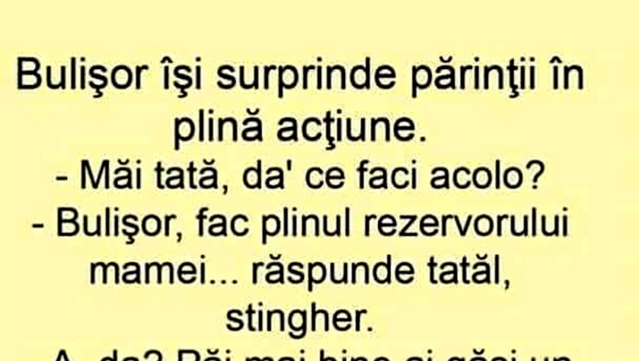 – Bulișor, fac plinul rezervorului mamei… răspunde tatăl, stingher.