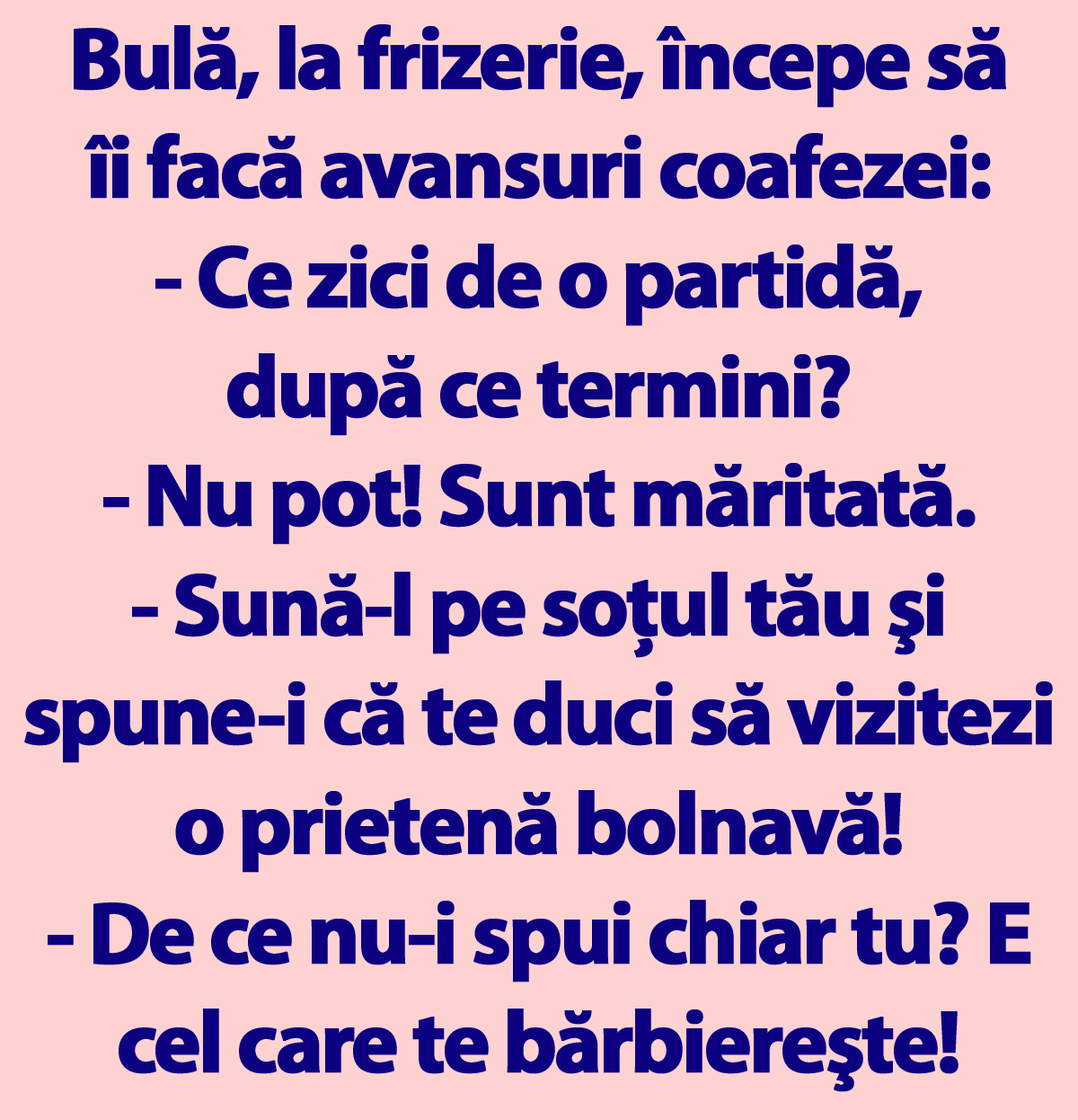 – De ce nu-i spui chiar tu? E cel care te bărbiereşte!