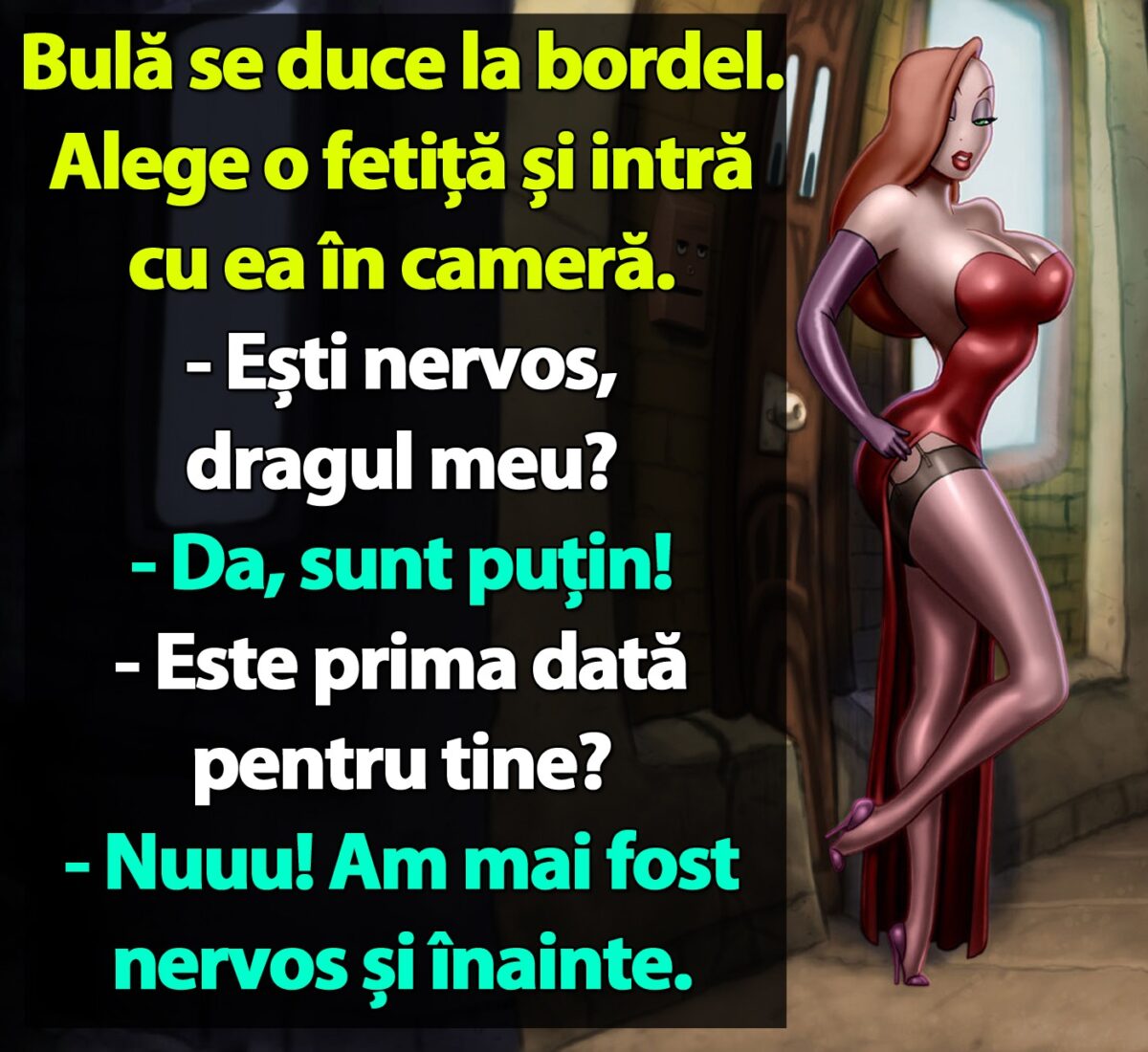 Bulă se duce la bordel. Alege o fetiță și intră cu ea în cameră.